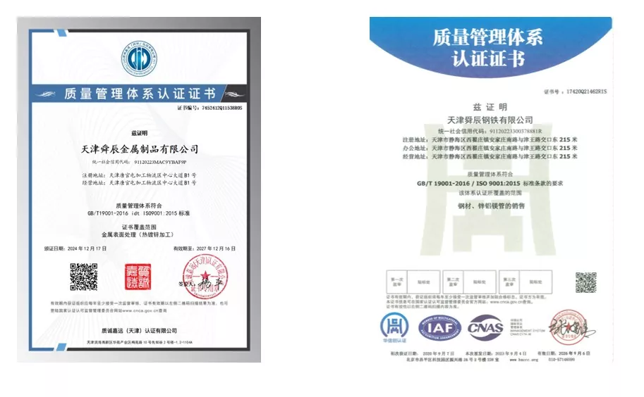 Kodėl verta rinktis mus? Tianjin Shuncheng pramonė gali pasigirti ilgus metus sukaupta gamybos technologija, 12 metų išlaikanti nulinių numatytųjų ir nulinių metinių kokybės incidentų rekordą, o tai padeda tvirtą pagrindą produktų kokybei. Įmonė griežtai laikosi nacionalinių gamybos standartų ir turi ISO 9000, 3A sistemos sertifikatus ir ES CE sertifikatus. Naudodamas 12 žingsnių procesą ir 3 sluoksnių pilno tikrinimo mechanizmą, jis kasmet pasiekia nulį kokybės ir saugos incidentų, o 12 metų – nulinės eilės numatytuosius nustatymus, įrodydamas savo stiprumą. Kiekvienas gatavas produktas prieš pakuojant ir išsiunčiant džiovinamas, tikrinamas ir kruopščiai apdorojamas, todėl užtikrinama aukšta kokybė. Įmonėje dirba daugiau nei 300 gamybos darbuotojų ir ji gali pagaminti 236 ERW plieno vamzdžių specifikacijas, siūlydama visą specifikacijų asortimentą ir palaikydama pritaikymą, kad tiksliai atitiktų įvairius poreikius.