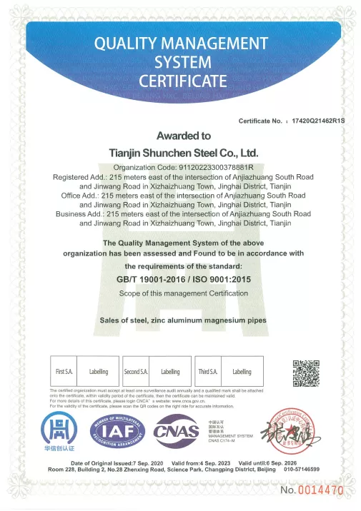 Mūsų cinkuoti apvalūs vamzdžiai yra įvairių specifikacijų, 236 skirtingų dydžių, kad atitiktų įvairius poreikius. Mūsų gaminiai yra sertifikuoti ISO9001, turintys ISO 9000, 3A sistemos sertifikatus ir ES CE sertifikatus. Taip pat teikiame medžiagų ataskaitas, cinko dangos storio bandymo sertifikatus ir trečiųjų šalių kokybės tikrinimo ataskaitas. Pasirinkę „Shunchun“ cinkuotus apvalius vamzdžius ne tik gausite vieno langelio pirkimo paslaugas, bet ir 24 valandas per parą, 7 dienas per savaitę, 7 dienas per savaitę ir stebėjimą realiuoju laiku 18 pagrindinių taškų, todėl jūsų pirkimas bus be rūpesčių ir patikimesnis.