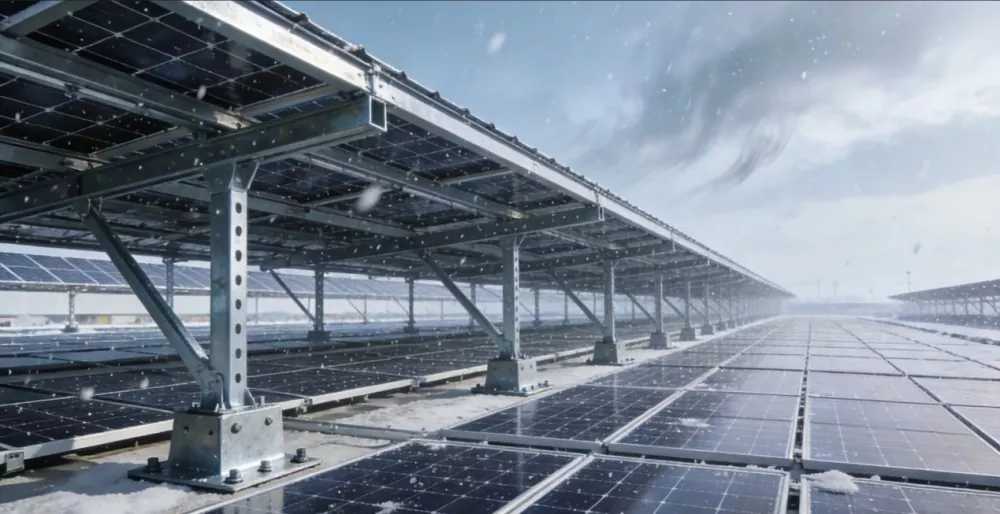 Išnaudodama savo visos pramonės grandinės pranašumus, „Shunchen Industry“ kaip pagrindines medžiagas naudoja didelio stiprumo plieną Q235B ir Q345B, kartu su savarankiškai sukurtais iš anksto įterptais komponentais, kad būtų užtikrintas integruotas ir efektyvus tiekimas. Laikiklio dydžio tolerancija griežtai kontroliuojama ± 0,3 mm, o tarpų tarp skylių tikslumas yra ≤ ± 0,2 mm. Modulinė konstrukcija leidžia greitai ir patogiai montuoti nepažeidžiant stogo hidroizoliacijos. Metalinio stogo saulės kolektorių kalno paviršius apdorotas karštuoju cinkavimu, kurio cinko sluoksnio storis ≥82 μm, o atsparumas druskos purškimui viršija 1000 valandų. Jis pasižymi puikiu našumu, atsparus vėjui iki 12 lygio ir sniego apkrovoms ≥0,7 kN/㎡. Brandžios technologijos dėka statybos efektyvumas pagerinamas daugiau nei 30%. Jis buvo sėkmingai pritaikytas tokiuose projektuose kaip elektronikos gamyklos Jiangsu ir logistikos parkai Šandonge, derinant didelio stiprumo laikomąją galią su ilgalaikiu atsparumu oro sąlygoms, suteikiant stabilius ir patikimus pritaikytus sprendimus fotovoltiniams projektams.