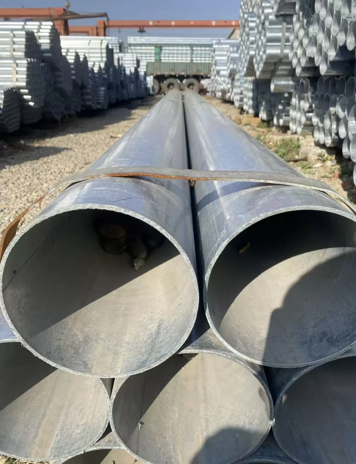 Kalbant apie medžiagų pasirinkimą, naudojami aukštos kokybės SAW suvirinti vamzdžiai, tokie kaip Q235B/Q345B/X70. Taikomi pažangūs dvipusio povandeninio lankinio suvirinimo ir karštojo cinkavimo antikoroziniai procesai. Gamybos procesas apima tris pasyvavimo procesus, siekiant pagerinti cinkuoto gaminio atsparumą šarminei korozijai, todėl susidaro tankios ir labai stiprios suvirinimo siūlės. Kiekvienas gatavas produktas prieš pakuojant ir išsiunčiant išdžiovinamas, patikrinamas ir smulkiai suremontuojamas. Galimas platus specifikacijų asortimentas, pagamintos 236 specifikacijos. Taip pat palaikomas didelio skersmens storasienių vamzdžių pritaikymas individualiems poreikiams.
