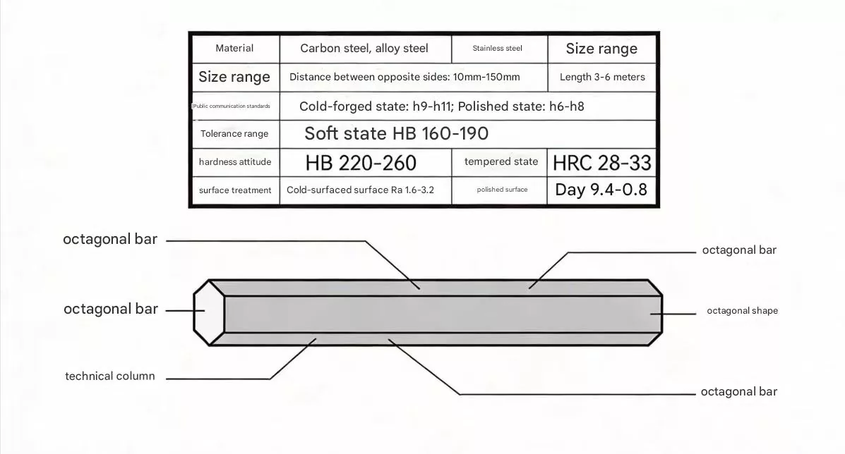 Šis specialios formos aštuonkampis strypas suformuotas taikant tikslią šalto apdorojimo technologiją, pažeidžiant tradicinio įprasto aštuonkampio plieno dydžio ir formos apribojimus. Jis yra specialiai sukurtas taip, kad atitiktų konkrečių scenarijų, pvz., mechaninės transmisijos ir padėties nustatymo, koordinavimo poreikius ir gali gerai prisitaikyti prie surinkimo ir naudojimo reikalavimų sudėtingomis darbo sąlygomis, užtikrinant stabilų mechaninių sistemų veikimą.